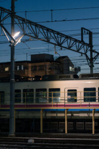 さすがに走っている車両の夜撮影はシャッタースピードの関係で難しいと思うが、停車している車両であれば夜の鉄道写真が撮影できる。